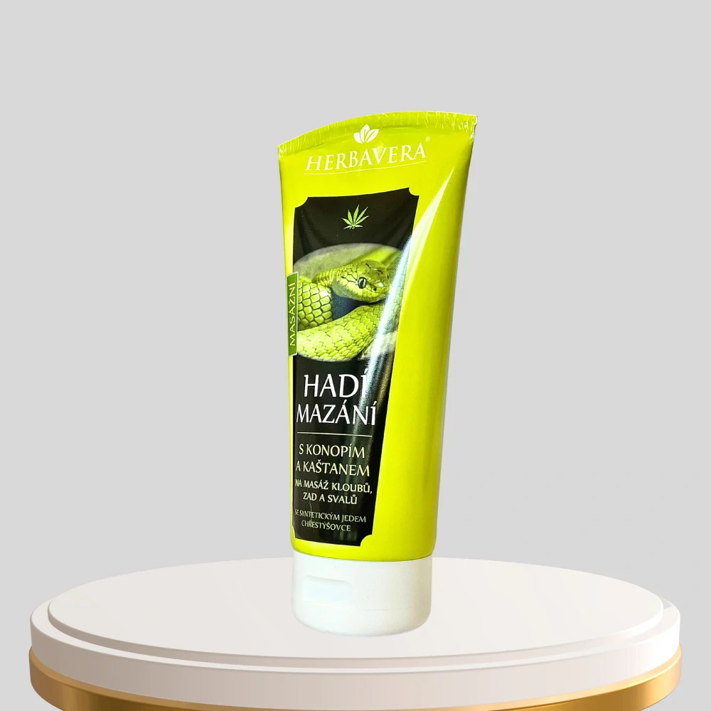 Hadí mazání s konopím a kaštenam epro masáž kloubů, zad a sval se syntetickým jedem chřestýšovce.